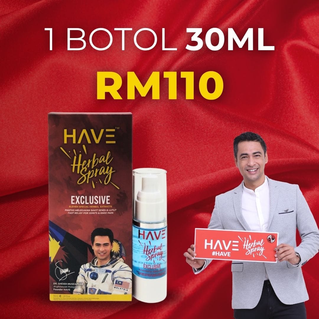 Sebotol HAVE Herbal Spray ni mengandungi 30ml dan boleh tahan 60 hari bergantung pada kekerapan penggunaan.